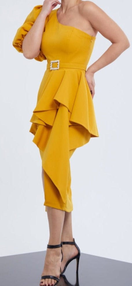 Dramatic Peplum Elegance with Jeweled Belt